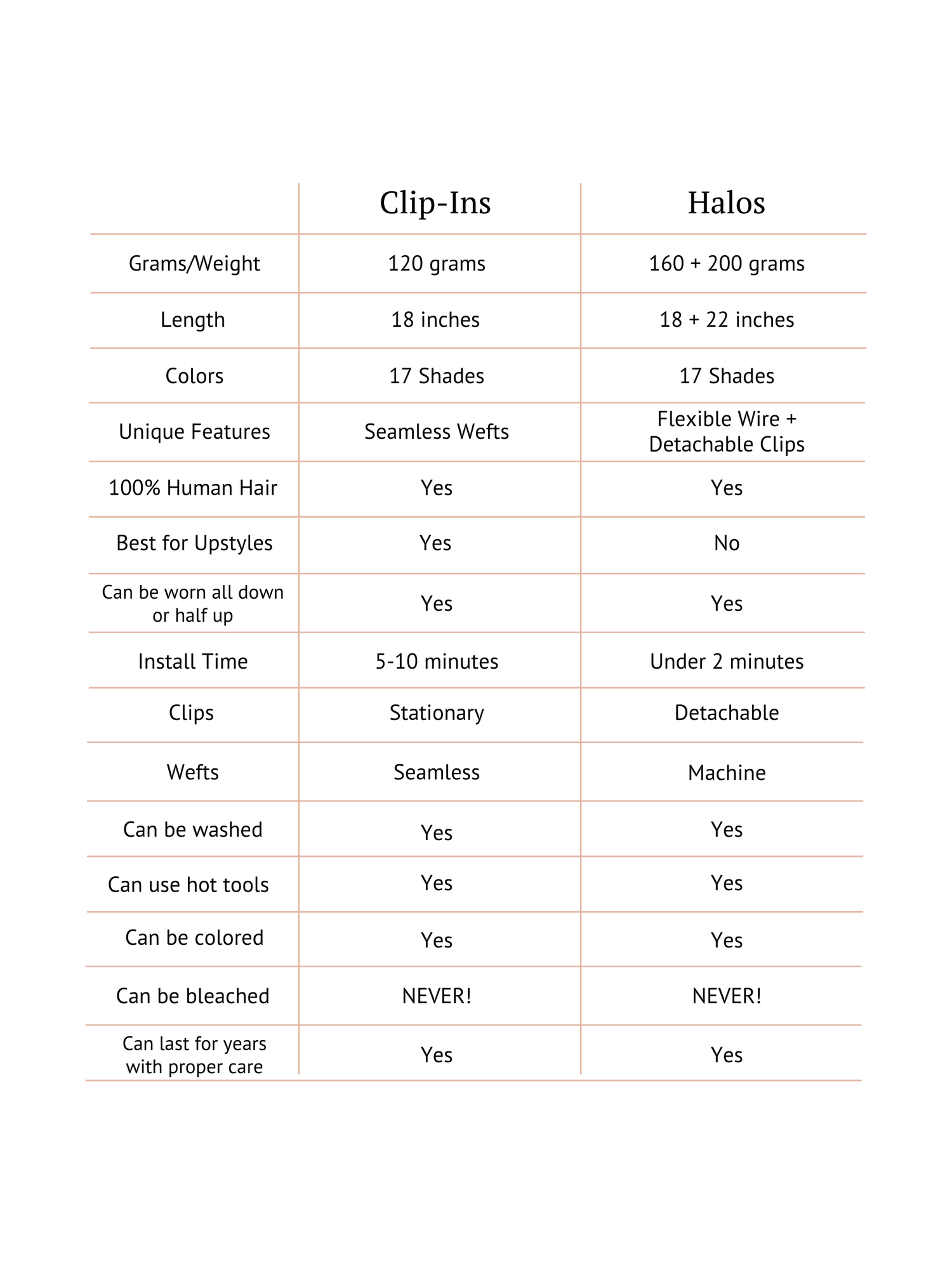 Collar Bone or Longer: Lucky you! Both CLIP-INS and HALOS work wonderfully with your hair length. Choose based on the style you want to achieve.